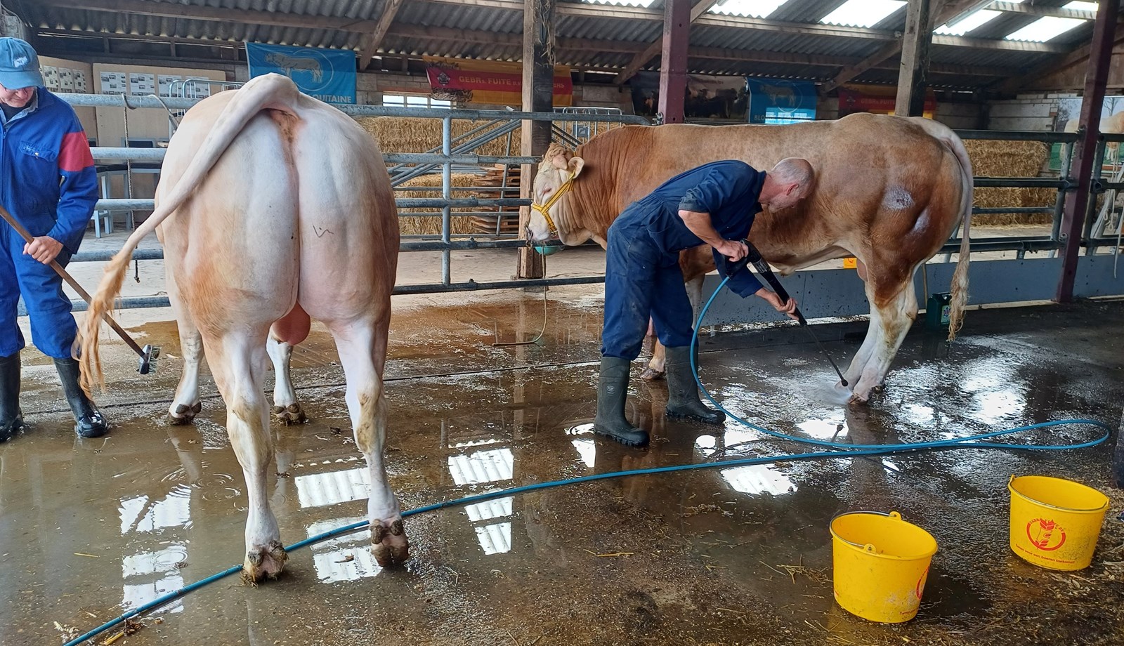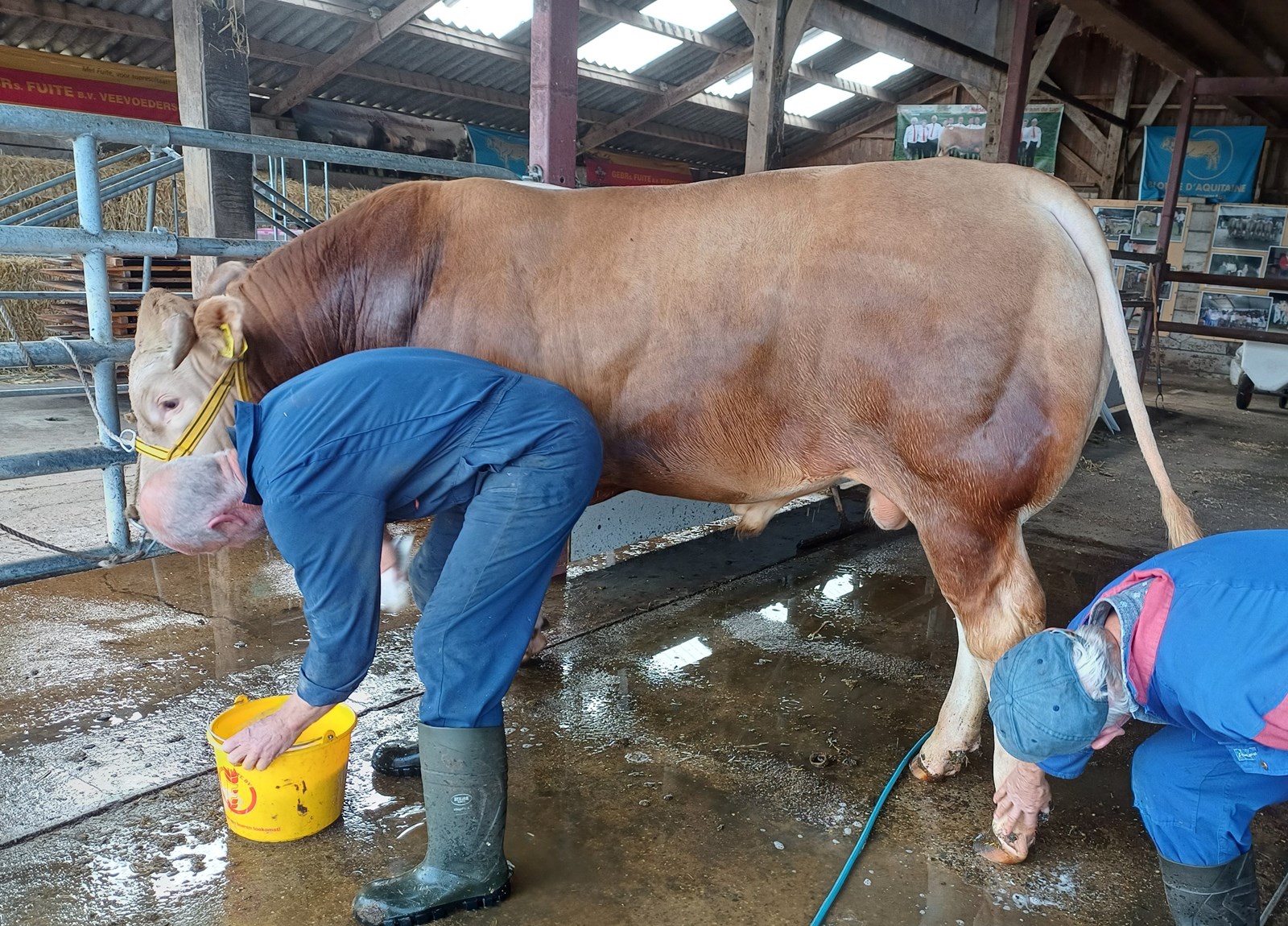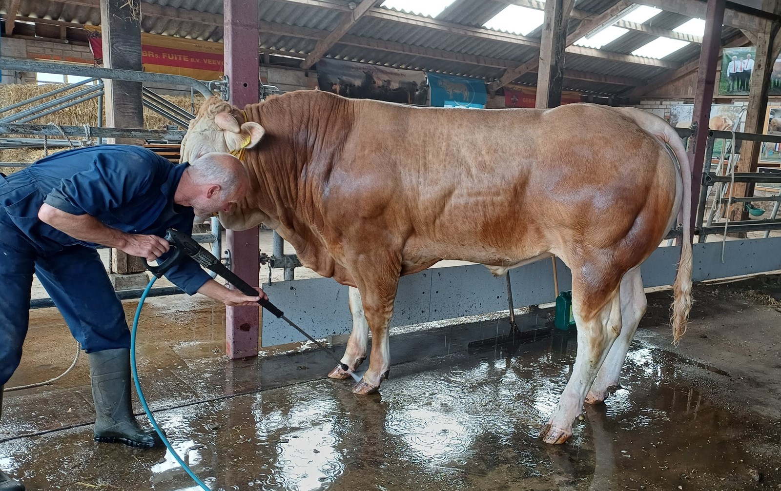 Vanmiddag zijn alle stieren op het opfokstation nog een keer aan en poetsbeurt onderworpen.