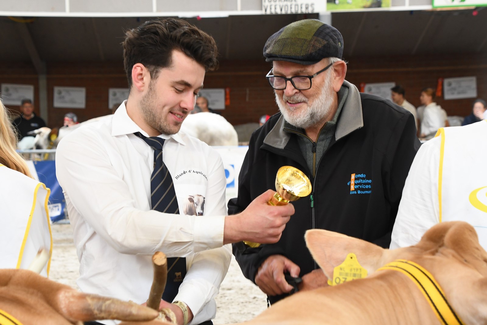 De twee kopnummers van de vaarzen tussen 1 en 2 jaar verdeeld over vier rubrieken kwamen in de ring om beoordeeld te worden door een afvaardiging van landen die zijn verenigd in de FIERBA. Een organisatie waarin de Europese Blonde d’Aquitaine stamboeken zich hebben aangesloten.